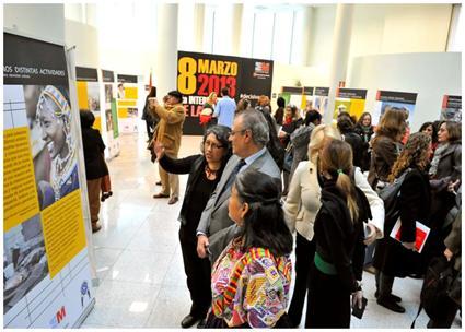La Exposición fue inaugurada el 20 de marzo de 2013 en la Dirección General de la Mujer, con la presencia de Otilia Lux de Cotí, Directora del Foro Internacional de Mujeres Indígenas, Laura Ruiz de Galarreta Directora General de la Mujer de la Comunidad de Madrid, Jesús Fermosel Consejero de Asuntos Sociales de la Comunidad de Madrid y Concha Domínguez de Posada Presidenta de Fundación WATU. Se mantendrá allí hasta el 18 de abril y posteriormente visitará, al menos, 7 municipios de la Comunidad de Madrid durante el año 2013. Asímismo se realizarán un conjunto de actividades complementarias que se desarrollarán en los mismos municipios, dirigidas a la población en general y a centros educativos. Ver exposición on-line en el apartado Mujeres Indígenas de esta web.